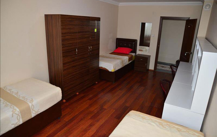 Yurdumuz, öğrenci yaşam alanlarına uygun olarak projelendirilip; Deprem yönetmeliğine uygun imarı yapılmış olan Sigortalı yeni binamızda 1-2-3-4 kişilik alternatifli, aydınlık, havadar ahşap mobilyalı ortopedik yatakları olan tüm ihtiyaçlarınıza uygun dizayn edilmiş çağdaş tasarımlı odalarımızla odalarda ve katlarda banyo wc modern makinalar da ütü ve çamaşır hizmeti Tv li dinlenme salonumuzla rahat ve sessiz bir ders çalışma ortamı sağladık.